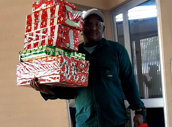 Entrega de regalos de navidad a trabajadores
